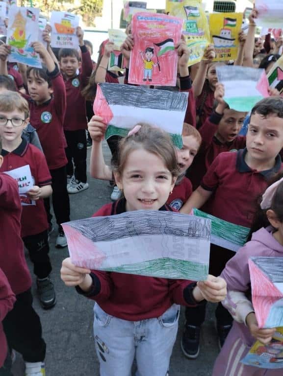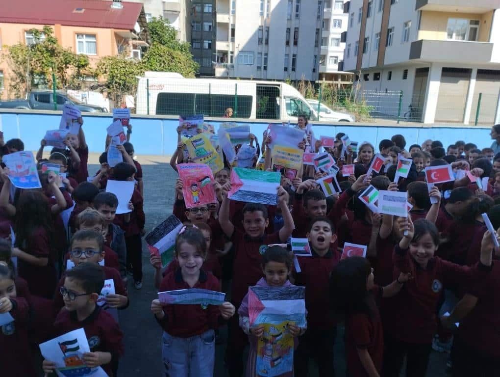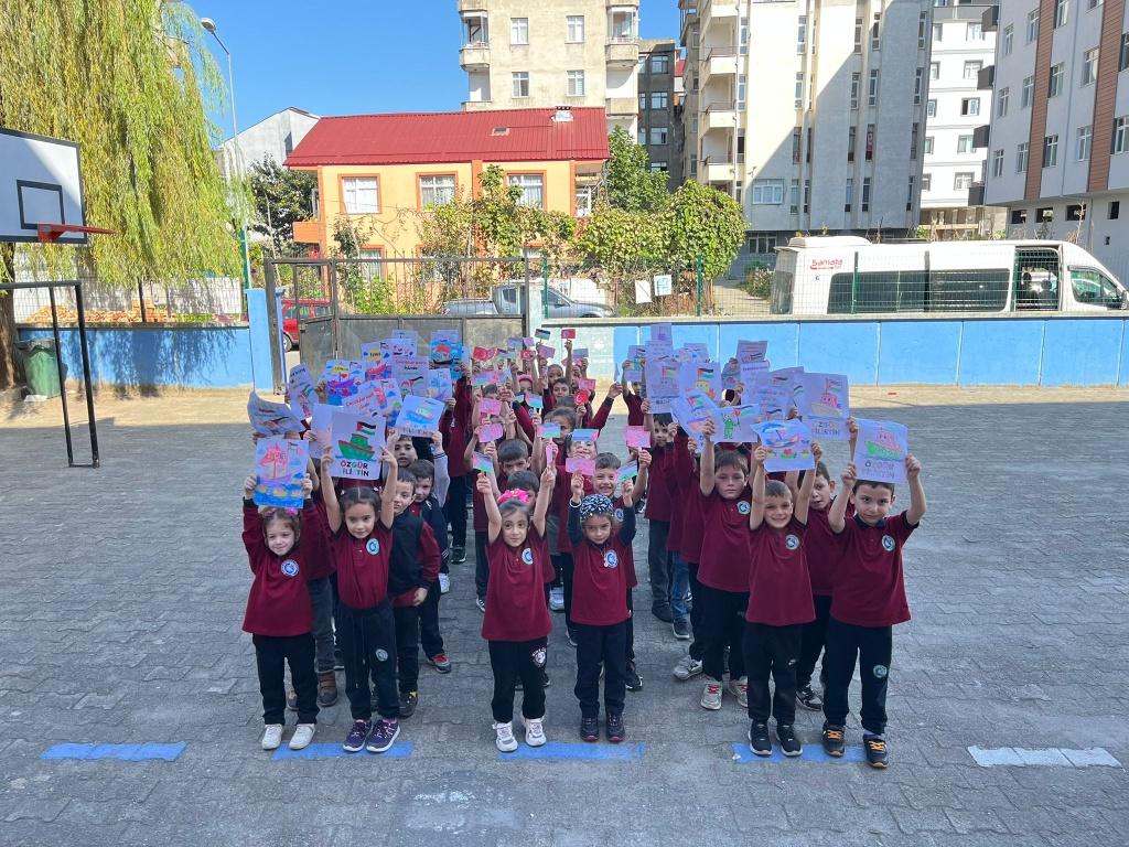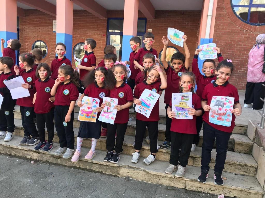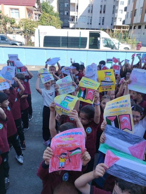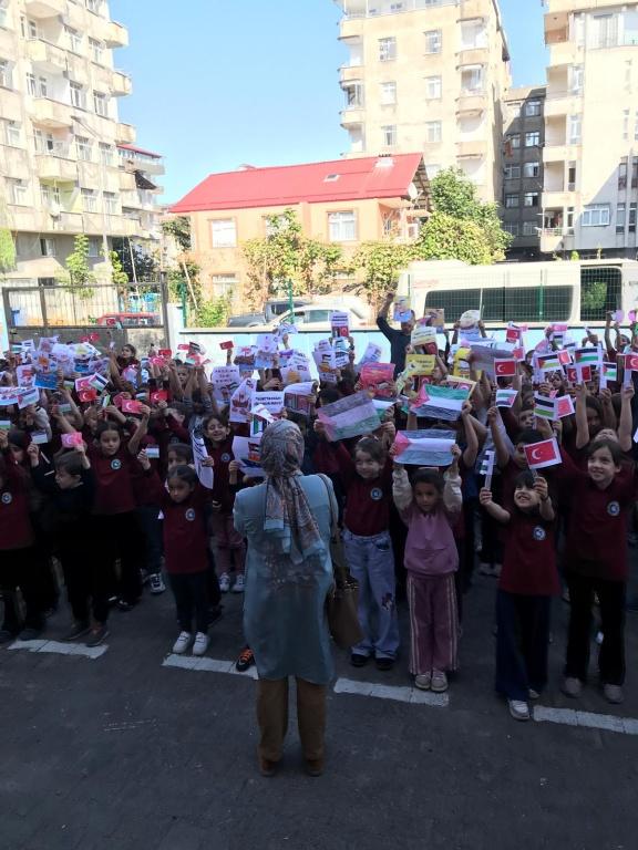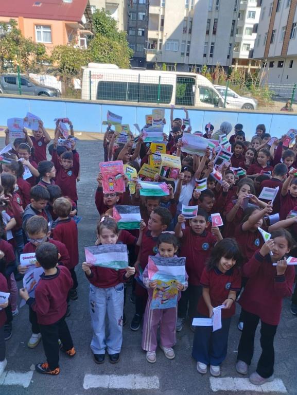 TÜM ÜLKE GENELİNDE OLDUĞU GİBİ OKULUMUZDA DA EŞ ZAMANLI OLARAK FİLİSTİN FARKINDALIK ETKİNLİĞİ YAPILDI. AMACIMIZ ÇOCUKLARIMIZA SADECE BİLGİ KAZANDIRMAK DEĞİL; VİCDANI, ADALETİ VE İNSAN OLMANIN SORUMLULUĞUNU DA ÖĞRETMEK ÇÜNKÜ İNSANIN İÇİNDEKİ İYİLİK YEŞERMEDİKÇE, HİÇBİR BİLGİ MEYVE VERMEZ. TÜRKİYE YÜZYILI MAARİF MODELİNİN MERKEZİNDE YER ALAN "ERDEM DEĞER EYLEM" ANLAYIŞIYLA BARIŞA, İNSAN HAKLARINA VE EVRENSEL DEĞERLERE SAYGILI BİR NESİL YETİŞTİRMEYE KARARLIYIZ. OKUL MÜDÜRÜ MURAT AKIN FİLİSTİN KONULU BİR KONUŞMA YAPTI. SONRASINDA ÖZGÜR FİLİSTİN, ÖZGÜR GAZZE, SENİNLEYİZ FİLİSTİN, SENİNLEYİZ GAZZE, SUMUD'A SELAM, ÖZGÜRLÜĞE SELAM SLOGANLARI İLE ÇOCUKLARIMIZIN FİLİSTİN FARKINDALIĞINI ARTIRMAYA ÇALIŞTIK. BİR AN ÖNCE FİLİSTİN DE ZULÜMÜN BİTMESİNİ UMUT EDİYOR. FİLİSTİN HALKINA SELAM YOLLUYORUZ. DAYAN FİLİSTİN, SENİNLEYİZ FİLİSTİN...