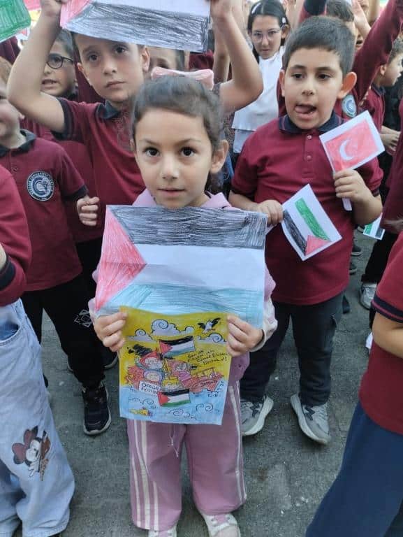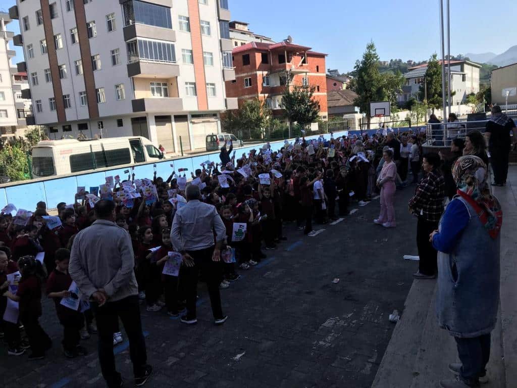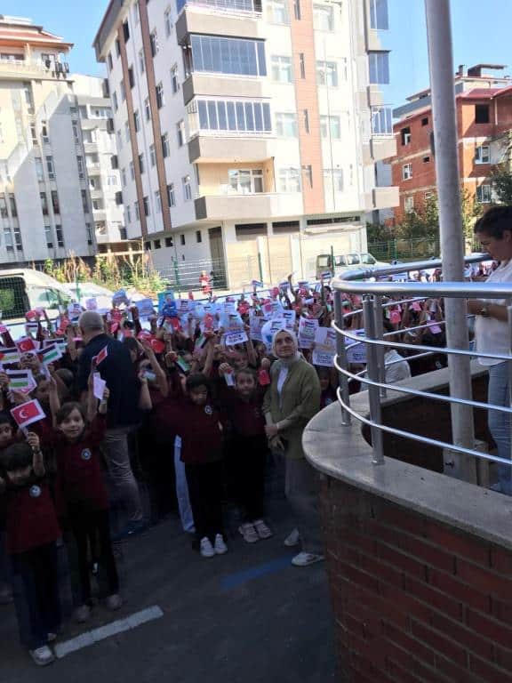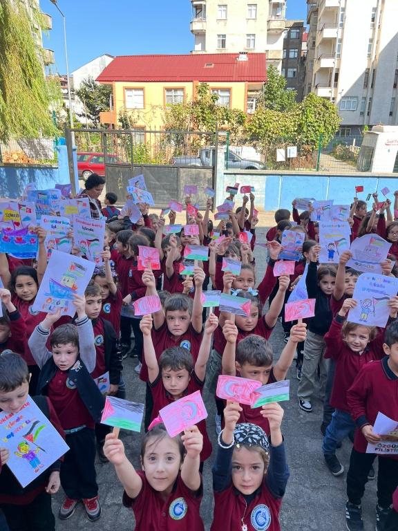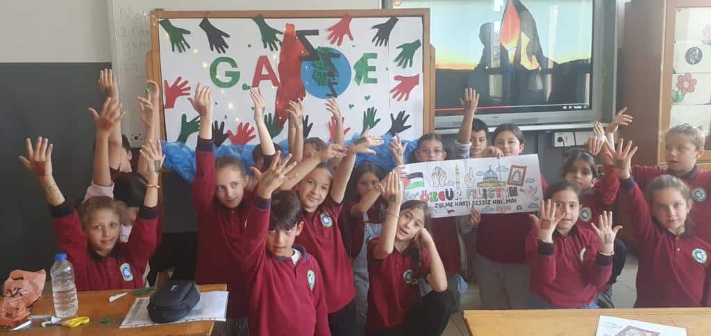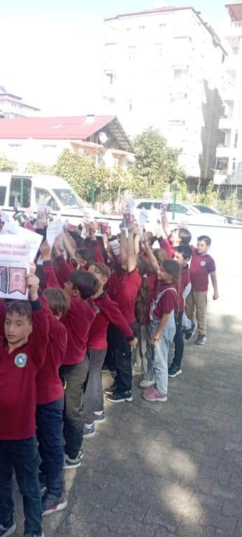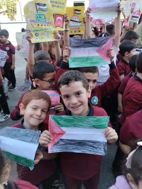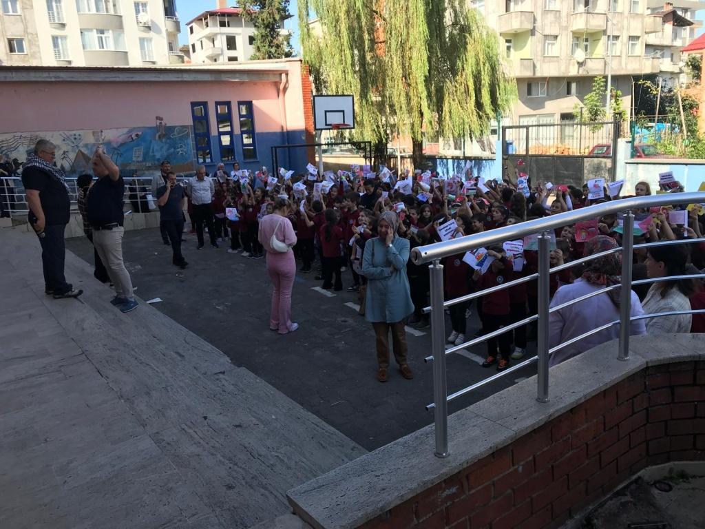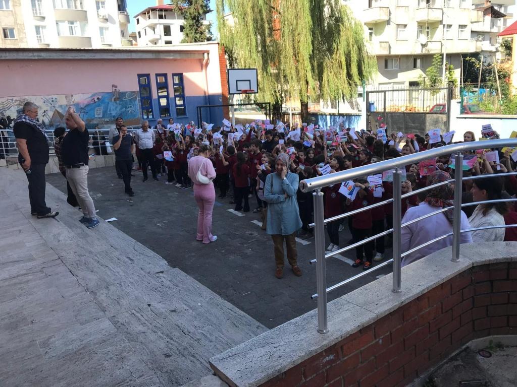TÜM ÜLKE GENELİNDE OLDUĞU GİBİ OKULUMUZDA DA EŞ ZAMANLI OLARAK FİLİSTİN FARKINDALIK ETKİNLİĞİ YAPILDI. AMACIMIZ ÇOCUKLARIMIZA SADECE BİLGİ KAZANDIRMAK DEĞİL; VİCDANI, ADALETİ VE İNSAN OLMANIN SORUMLULUĞUNU DA ÖĞRETMEK ÇÜNKÜ İNSANIN İÇİNDEKİ İYİLİK YEŞERMEDİKÇE, HİÇBİR BİLGİ MEYVE VERMEZ. TÜRKİYE YÜZYILI MAARİF MODELİNİN MERKEZİNDE YER ALAN "ERDEM DEĞER EYLEM" ANLAYIŞIYLA BARIŞA, İNSAN HAKLARINA VE EVRENSEL DEĞERLERE SAYGILI BİR NESİL YETİŞTİRMEYE KARARLIYIZ. OKUL MÜDÜRÜ MURAT AKIN FİLİSTİN KONULU BİR KONUŞMA YAPTI. SONRASINDA ÖZGÜR FİLİSTİN, ÖZGÜR GAZZE, SENİNLEYİZ FİLİSTİN, SENİNLEYİZ GAZZE, SUMUD'A SELAM, ÖZGÜRLÜĞE SELAM SLOGANLARI İLE ÇOCUKLARIMIZIN FİLİSTİN FARKINDALIĞINI ARTIRMAYA ÇALIŞTIK. BİR AN ÖNCE FİLİSTİN DE ZULÜMÜN BİTMESİNİ UMUT EDİYOR. FİLİSTİN HALKINA SELAM YOLLUYORUZ. DAYAN FİLİSTİN, SENİNLEYİZ FİLİSTİN...